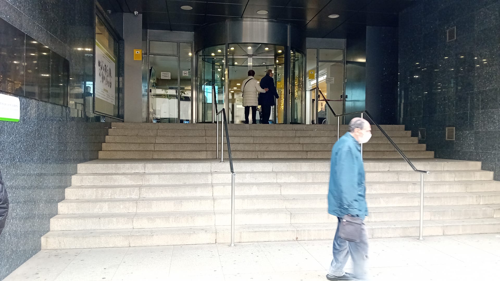 +34692568336 dice: Aquí vemos la entrada de un hospital universitario, que claramente un acceso totalmente inaccesible, unas escaleras muy grandes y una fuerte de estas que ruedan.