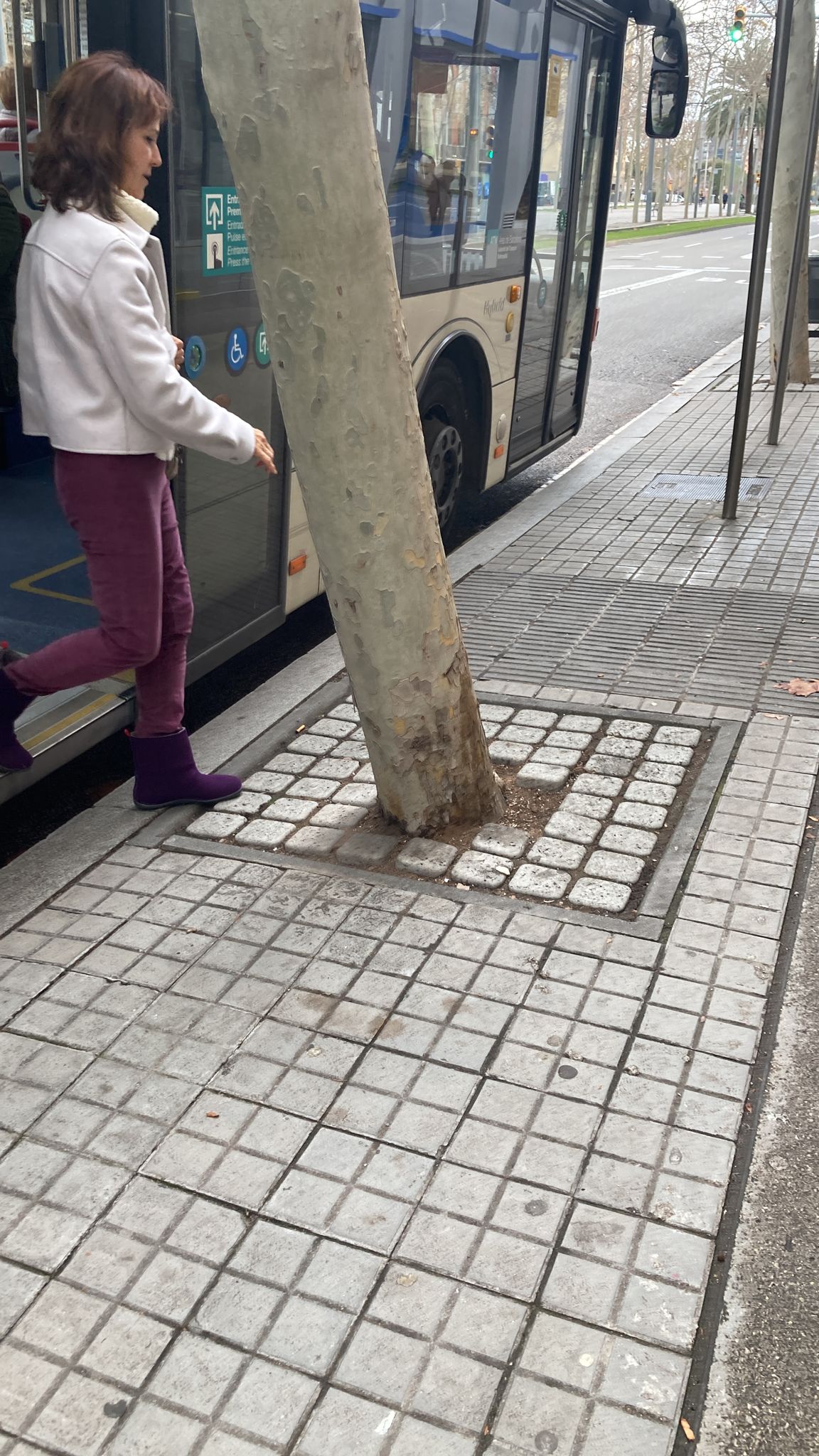 Gemma dice: Aquí, davano, ya que tarde, como he visto en la foto anterior, el autobús generalmente para yo abrirles portes. Cuando yo portaba al meu nen a mal cuchete y los autobúsos para venir y abrirles portes davano del abre, pensaba, no sé por qué fue esto, si es imposible baixar, sino si tens davano un abre y imagino las personas, siempre pensaban las personas de movilidad reduida o en cadira de rodes, pero como eso complica las cosas.